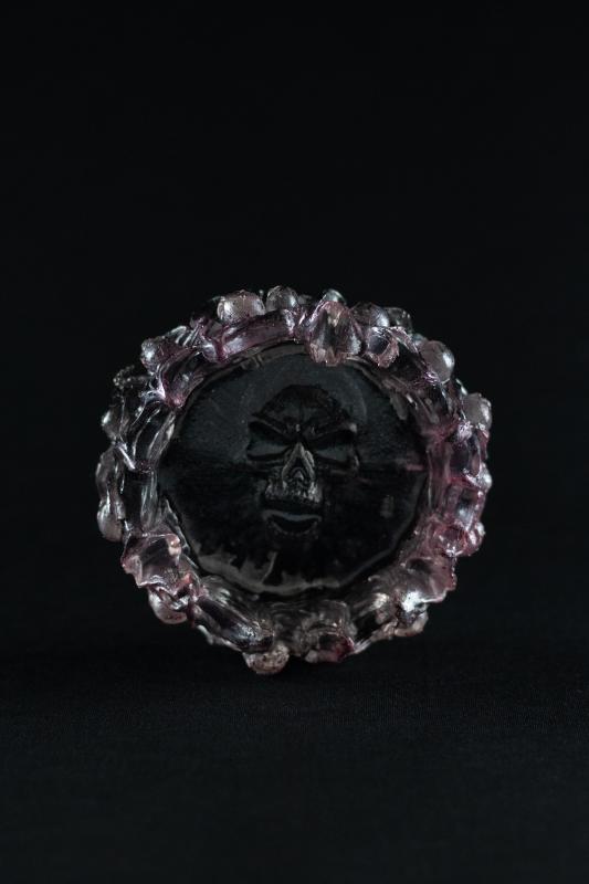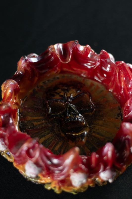 15 cm diâmetro - caveira em relevo, no centro da peça