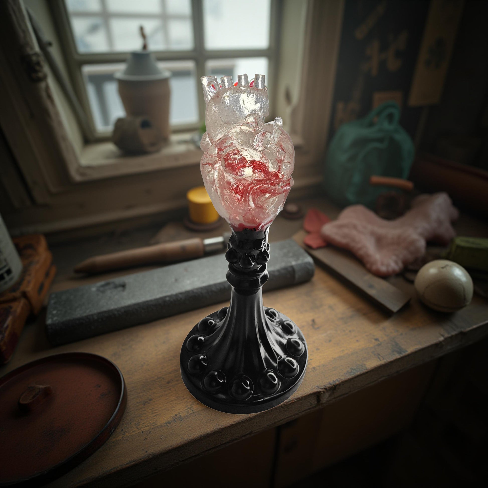 Estátua do coração humano , no pedestal - em resina de alta qualidade