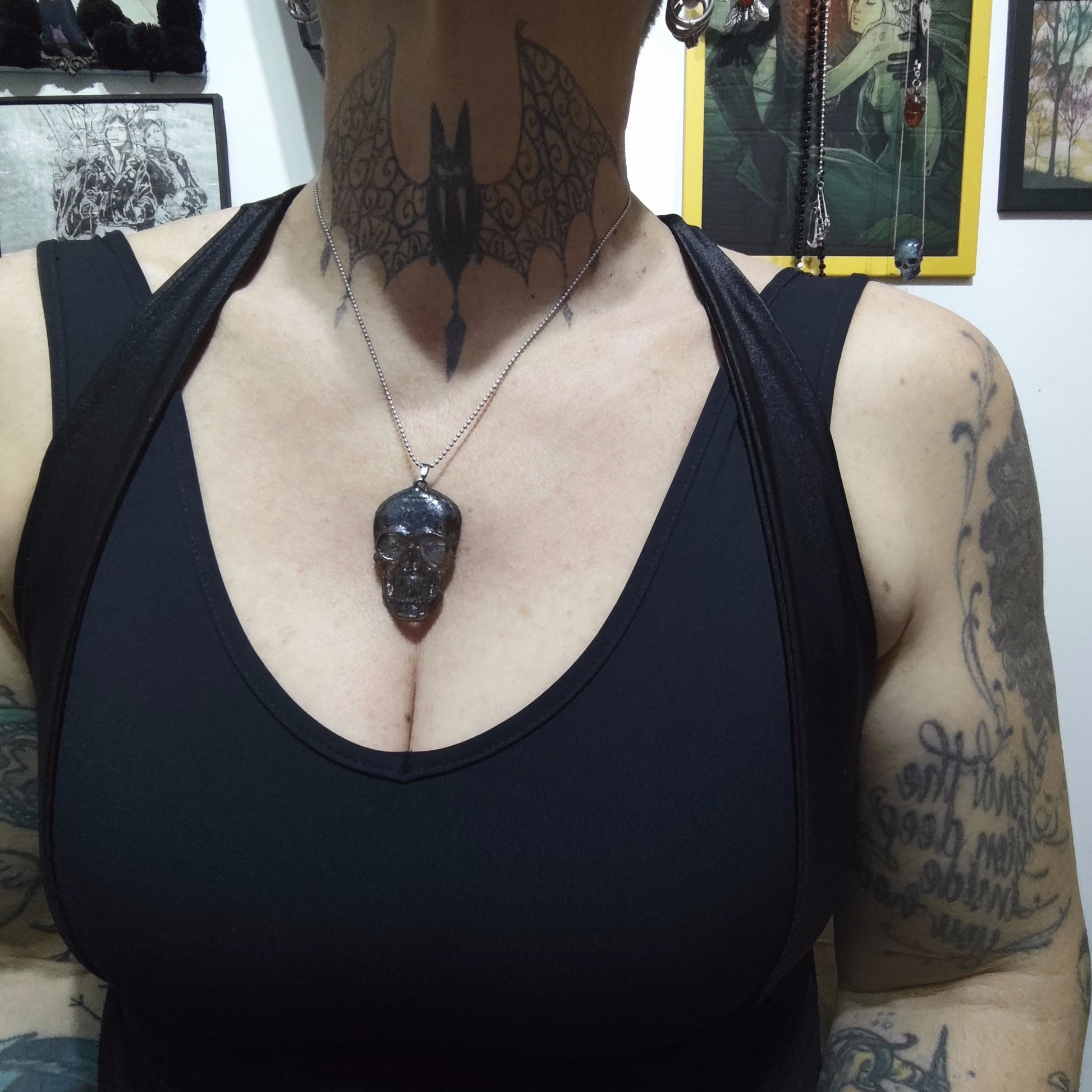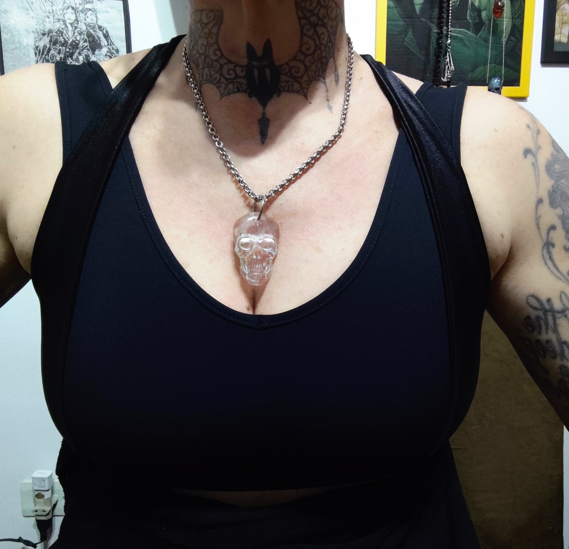 Colar em resina, caveira achatada